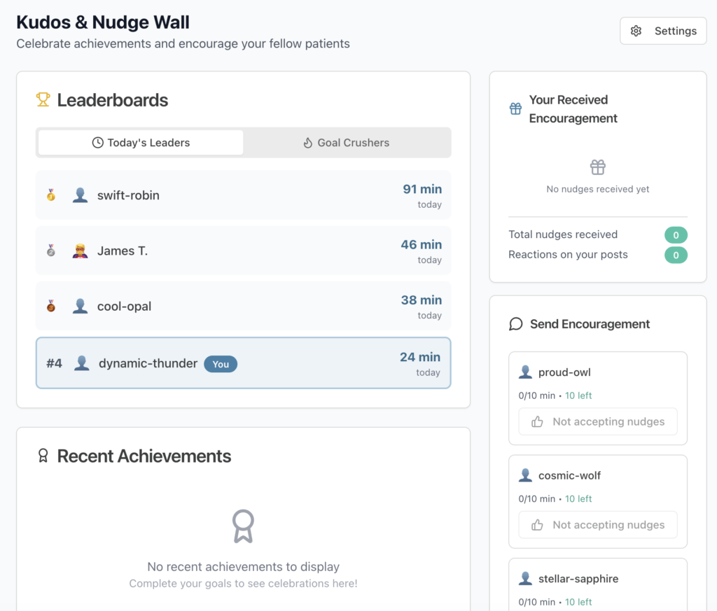 Interactive software engages patients in their own recovery with real-time feedback and progress visibility. Self-supervised. Self-motivated.