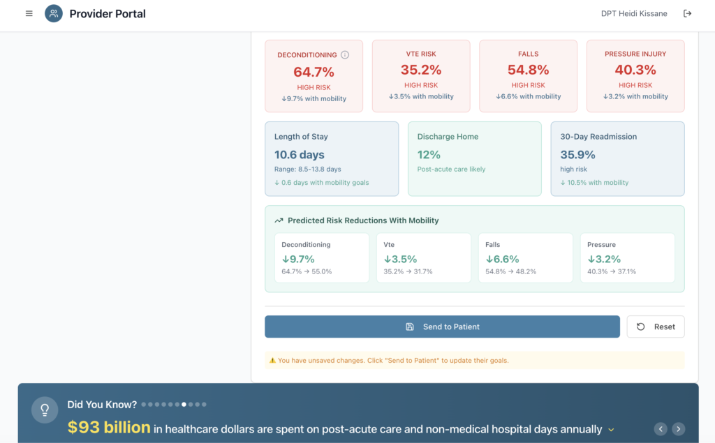Care teams see real-time activity data and trending over time. Documentation-ready reports support discharge planning with objective evidence.
